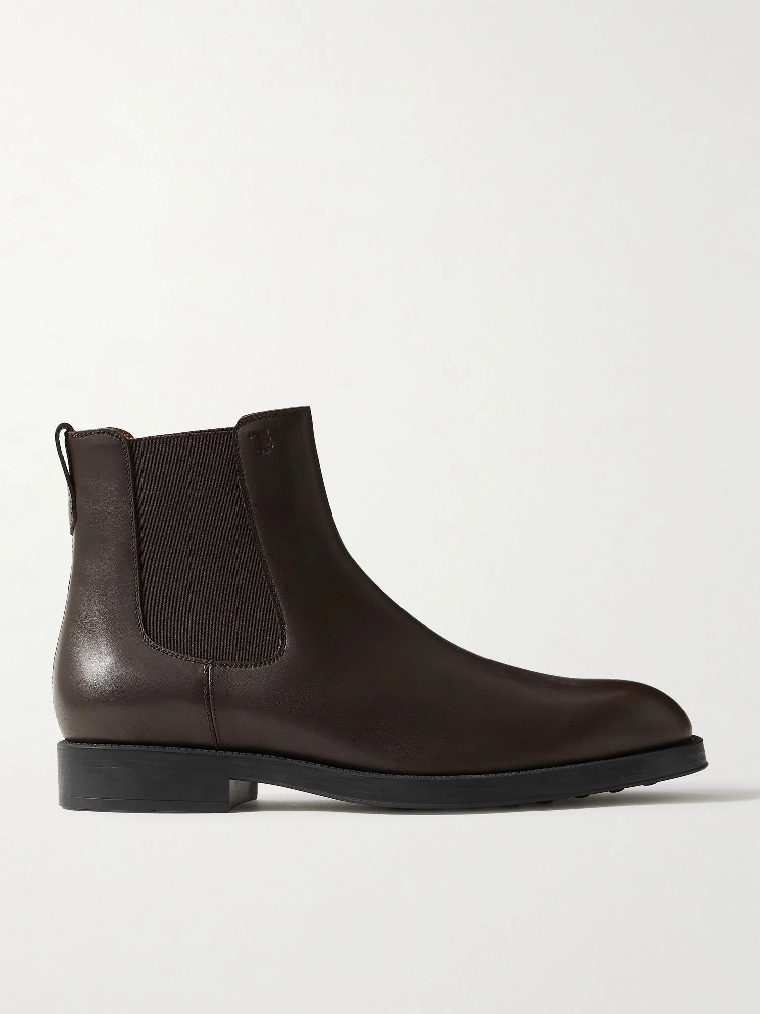 Tod's Chelsea boots are an enduring classic, easy to style with jeans or smartened up with cuffed chinos. They've been made in Italy from dark-brown leather and feature signature rubber pebble detailing on the soles for optimal traction. Size & Fit Fits true to size, please refer to Tod’s size guide below: - UK 6.5 = US 8/ EU 40 - UK 7 = US 8.5/ EU 40.5-41 - UK 7.5 = US 9/ EU 41-41.5 - UK 8 = US 9.5/ EU 42 - UK 8.5 = US 10/ EU 42.5-43 - UK 9 = US 10.5/ EU 43-43.5 - UK 9.5 = US 11/ EU 44 - UK 10 = US 11.5/ EU 44.5 - UK 10.5 = US 12/ EU 45-45.5 - UK 11 = US 12.5/ EU 45.5-46 - UK 11.5 = US 13/ EU 46.5 - UK 12 = US 13.5/ EU 47 - UK 12.5 = US 14/ EU 47.5-48 - UK 13 = US 14.5/ EU 48-48.5 Details & Care - Dark-brown leather (Calf) - Tod's follows its own size guide, therefore the size stated on the box will differ from the one provided in our size chart. To receive your correct fit, please refer to Size & Fit notes