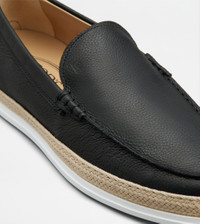 Loafers in slipper version, crafted in soft full grain leather with exposed grain, with stamped Tod's monogram and exposed stitching. Rubber outsole with embossed rubber pebbles and raffia weaving with artisanal detailing. - Made in Italy - Men's raffia loafers - Leather upper - Stamped Tod's monogram - Exposed handmade stitching - Rubber pebble detailing on the heel - Rubber outsole with embossed rubber pebbles - Raffia piping - Maintenance and care cards included - Branded dustbag