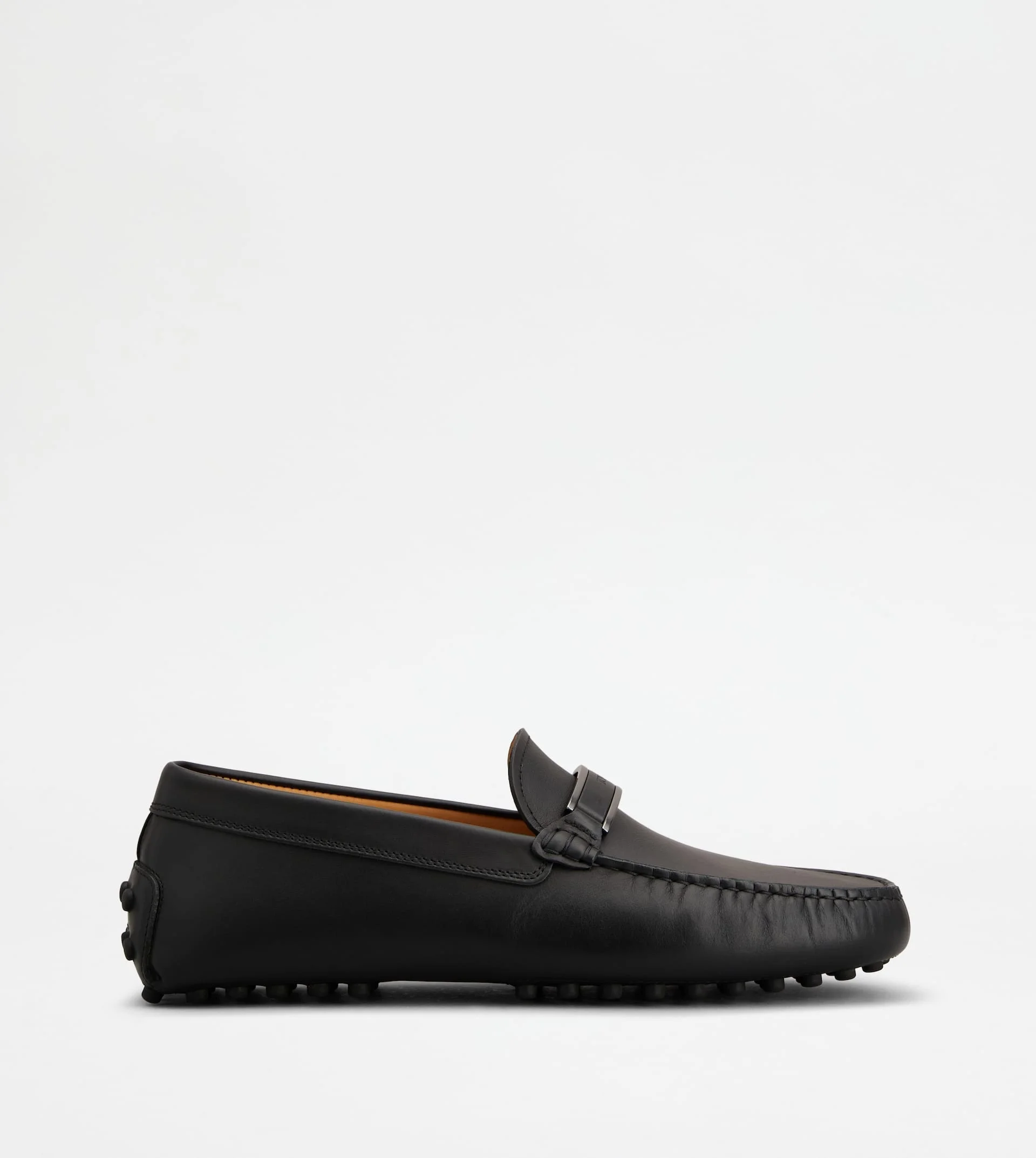 Tod's Gommino driving shoes interpret an informal and relaxed elegance. Result of careful craftsmanship, they come here in soft calfskin leather. Featuring a metal and leather bar with stamped Tod's logo, they come with the iconic rubber pebble outsole. - Made in Italy - Men's Tod's Gommino - Calfskin leather upper - Metal and leather bar with Tod's logo - Exposed handmade stitching - Leather lining ad insole - Rubber pebble detailing on the heel - Iconic rubber pebble outsole - Maintenance and care cards included - Branded dustbag