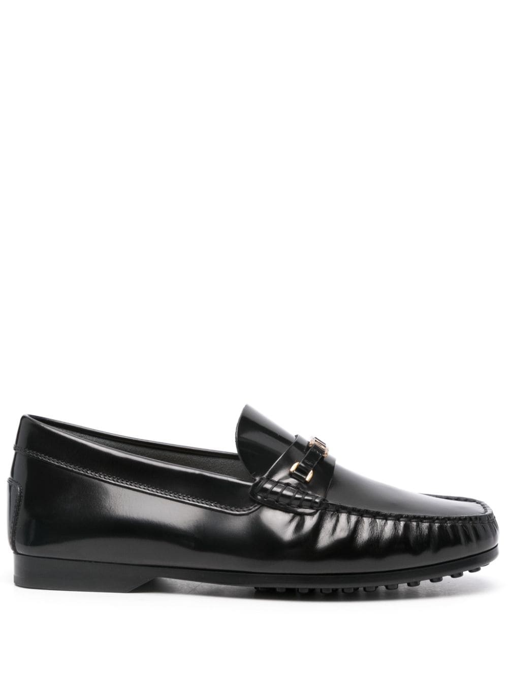 Gommino leather loafers Highlights - Black - Calf leather - Polished effect - Square toe - Moc stitching - Chain-link detailing - Branded leather insole - Suede lining - Flat rubber sole - Slip-on style Made in Italy Composition Lining: Calf Leather 100% Outer: Calf Leather 100% Sole: Rubber 100% SIZE & FIT Measurement HEEL 0.62 in(1.6 cm)