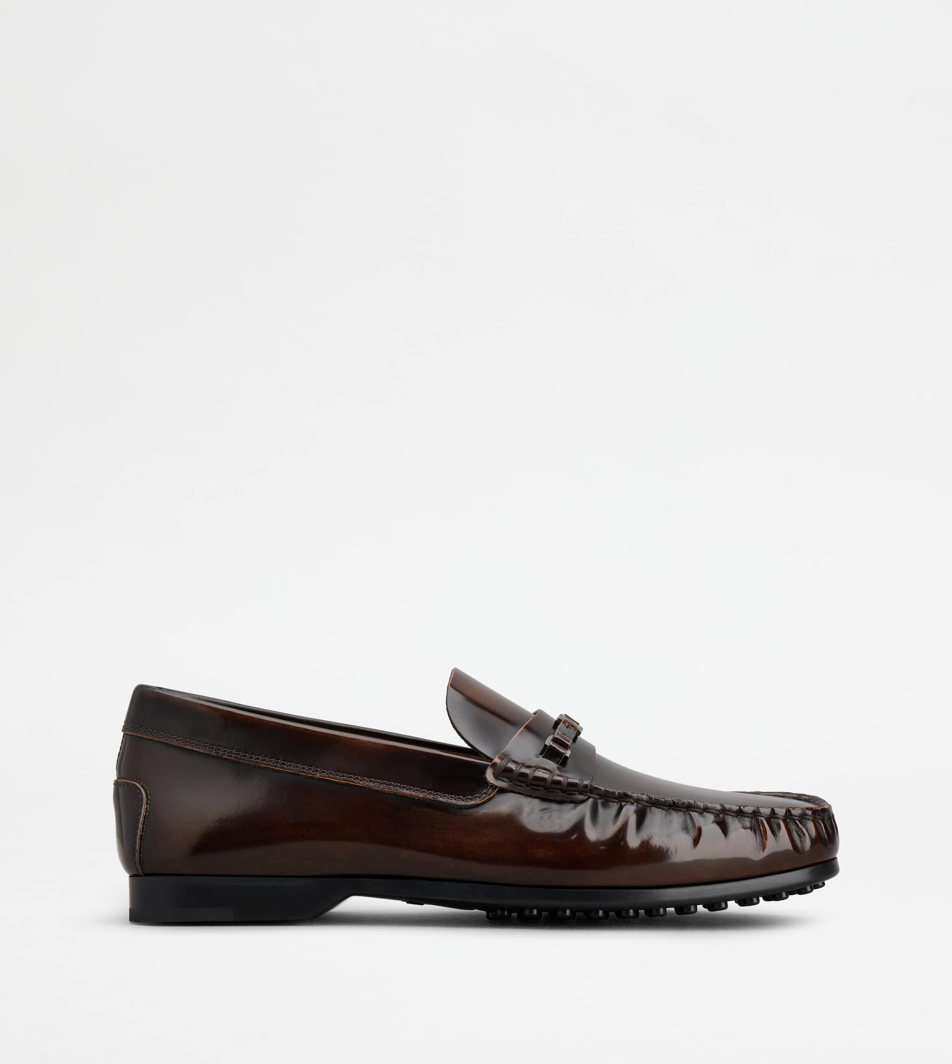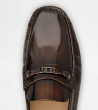 Loafers in brushed calfskin leather, with penny bar and mini branded metal chain accessory. Featuring a slightly gathered toe, they come with a rubber outsole with embossed rubber pebbles. - Made in Italy - Men's Tod's loafers with clamp - Brushed calfskin leather upper - Penny bar - Mini metal chain accessory - Leather insole - Rubber outsole with embossed rubber pebbles - Maintenance and care cards included - Branded dustbag