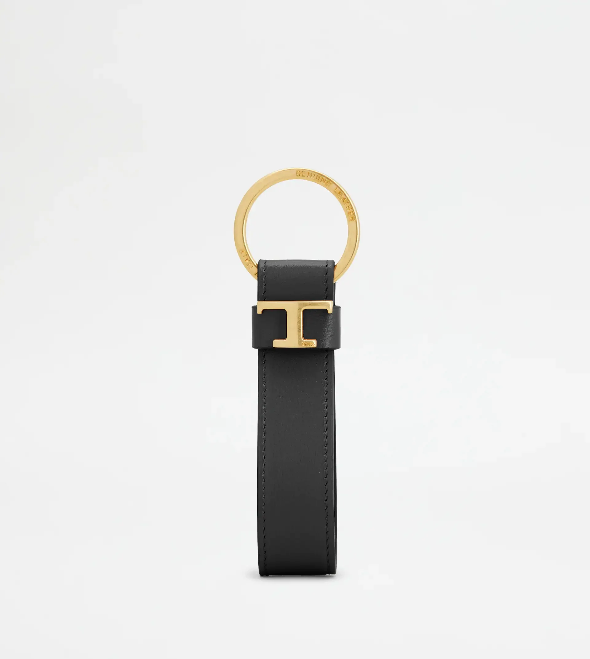 Key holder in elegant leather with metal branded T Timeless logo. - Made in Italy - Men's Tod's key holder - Item crafted in leather - Metal key ring - Metal branded T Timeless logo - Dimensions: 1.2 x 6 x 1.2 ins - Maintenance and care cards included