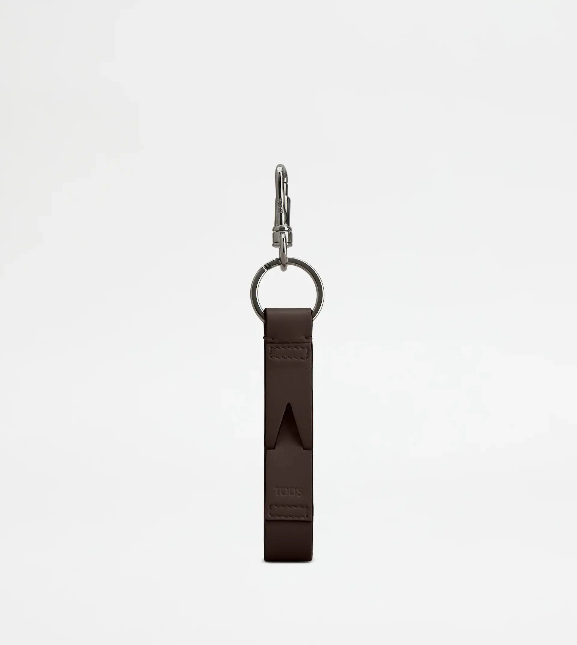 Key holder crafted in calfskin leather. Inspired by the historic Greca Belt with stamped Tod's logo, it comes with a branded metal key ring and snap hook. - Dimensions: L 0.8 ins x H 4.3 ins x D 1 in - Made in Italy - Men's key holder in leather - Item crafted in calfskin leather - Metal key ring and snap hook - Maintenance and care cards included