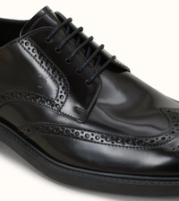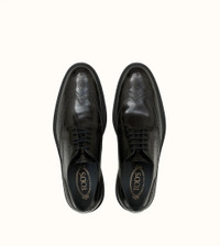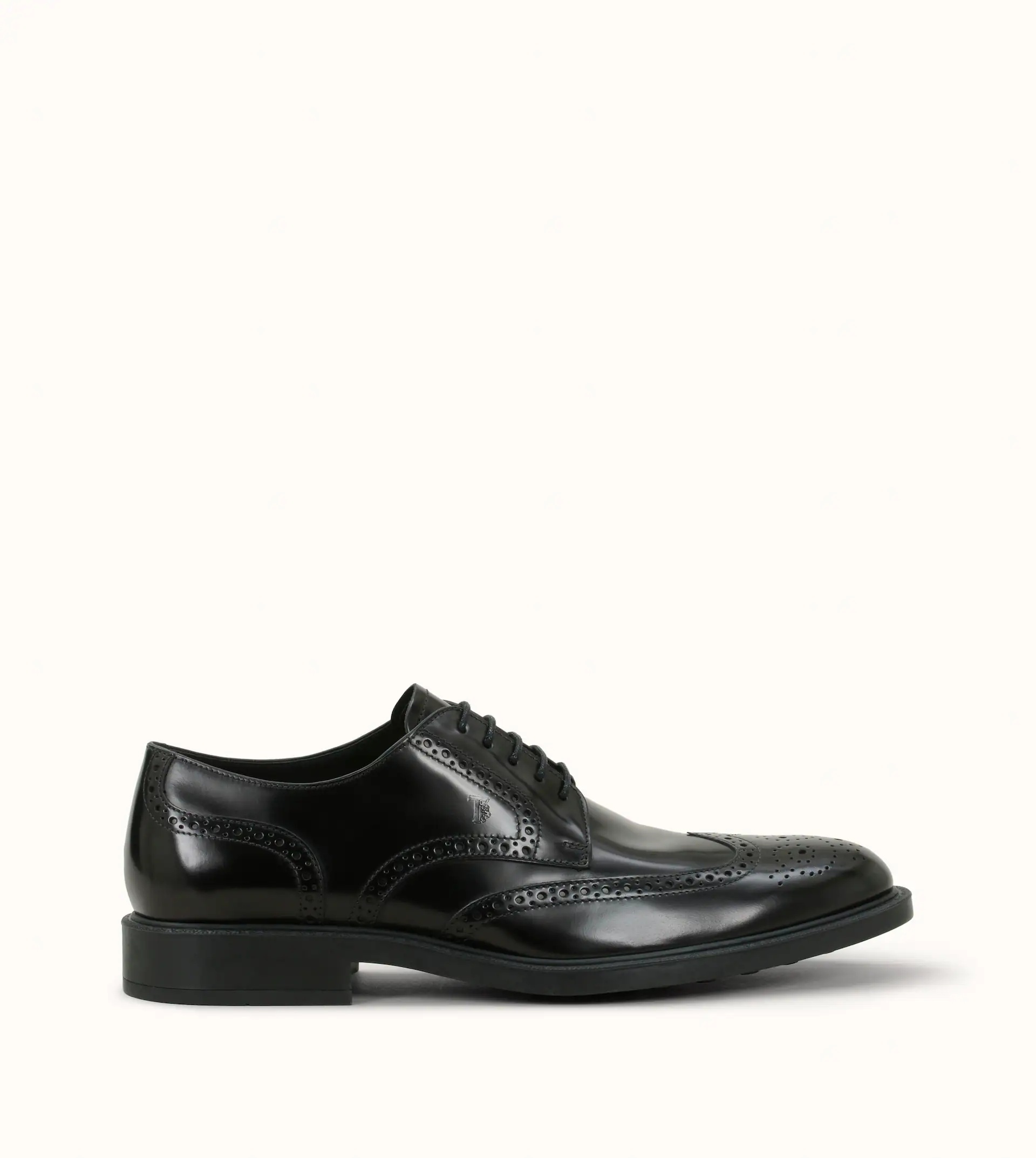 Lace-up in semi-glossy brushed leather with traditional English style wing-tip perforations and a rubber outsole with embossed rubber pebbles. - Made in Italy - Men's Tod's Derby - Leather upper - English style wing-tip perforations - Stamped Tod's monogram - Rubber outsole with embossed rubber pebbles - Maintenance and care cards included - Branded dustbag