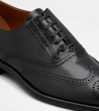 Lace-ups in semi-shiny leather with refined perforations, wingtip and leather outsole. Enhanced by stamped Tod's monogram, they are a style with timeless elegance. - Made in Italy - Men's lace-up shoes - Leather upper - Semi-shiny brushed finishing - Perforations and wingtip - Stamped Tod's monogram - Leather insole - Leather outsole - Maintenance and care cards included - Branded dustbag