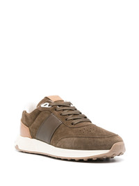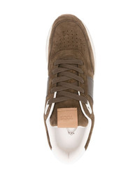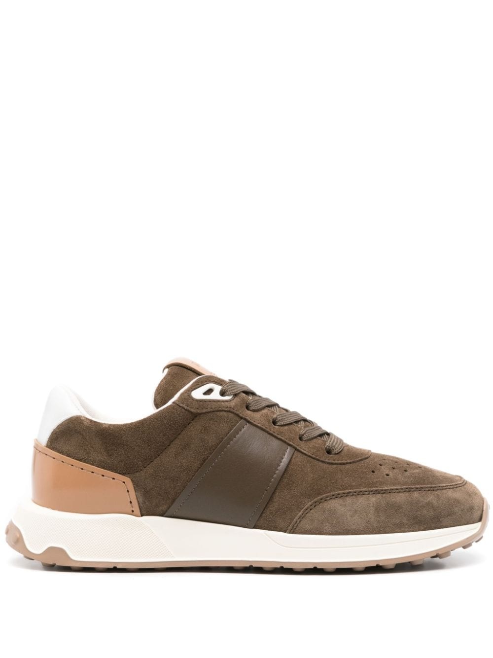 lace-up suede sneakers Highlights - Coffee brown - Calf suede - Panelled design - Leather panels - Round toe - Perforated toebox - Side stripe detailing - Logo patch at the tongue - Contrasting heel counter - Padded ankle - Branded leather insole - Contrasting flat rubber sole - Front lace-up fastening Made in Italy Composition Lining: Calf Leather 100%, Fabric 100% Outer: Calf Leather 100%, Calf Suede 100% Sole: Rubber 100% SIZE & FIT Measurement HEEL 1.18 in(3 cm) Sole height 0.78 in(2 cm)