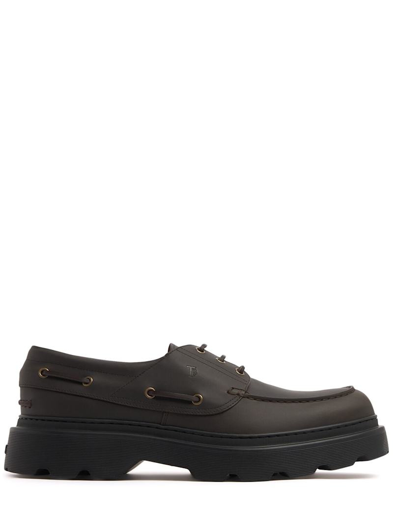 DETAILS - Leather upper - Front lace-up closure - Reinforced eyelets - Treaded rubber sole - Made in Italy - Composition: 100% Calf