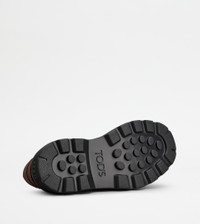 Boat loafers in calfskin leather with waxed finishing, rubber lugged outsole. Featuring the Tod's monogram stamped on the side, this timeless urban model comes with handcrafted piping-style stitching. - Made in Italy - Men's boat loafers - Calfskin leather upper - Waxed finishing - Woven tie - Leather lining and insole - Rubber outsole - Maintenance and care cards included - Branded dustbag