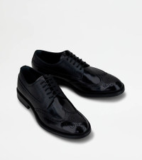 Lace-up shoes in shiny leather, with hammered leather inserts, perforations and wingtip, stamped Tod's monogram and leather outsole with rubber injections. - Made in Italy - Men's Tod's Lace-ups - Leather upper - Perforations and wingtip - Stamped Tod's monogram - Leather outsole with rubber injections - Maintenance and care cards included - Branded dustbag