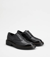 Lace-ups in elegant leather, with English style wing-tip perforations, stamped Tod's monogram and extralight rubber outsole. Featuring the distinctive rubber pebbles on the tread, they are finished with a leather welt. - Made in Italy - Men's Tod's derby - Leather upper - Semi-shiny brushed finishing - English style wing-tip perforations - Stamped Tod's monogram - Leather insole - Rubber outsole with embossed rubber pebbles - Maintenance and care cards included - Branded dustbag