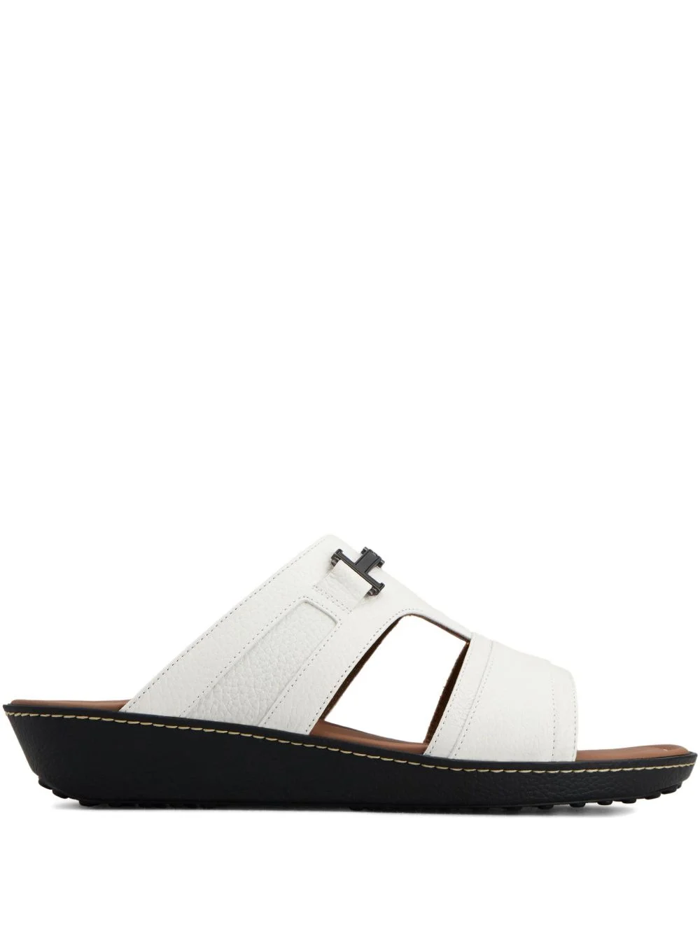 leather buckle sandals Highlights - White - Pebble leather - Double strap - T-bar buckle fastening - Wedge heel - Rubber sole Made in Italy Composition Outer: Calf Leather 100% Sole: Rubber 100% Lining: Calf Leather 100%