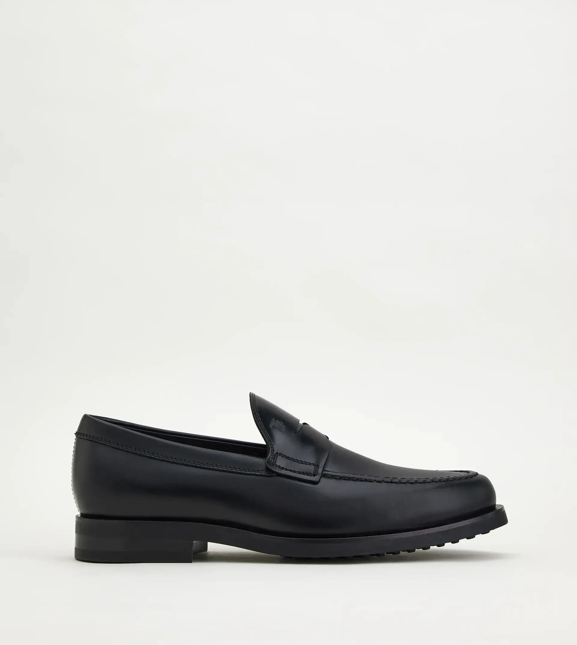 Loafers in semi-glossy leather with penny bar, stamped Tod's monogram and rubber outsole with embossed pebbles. - Made in Italy - Tod's men's loafers - Leather upper - Stamped Tod's monogram - Exposed hand stitching - Penny bar - Rubber outsole with embossed pebbles - Care and maintenance instructions included - Branded dustbag included