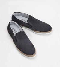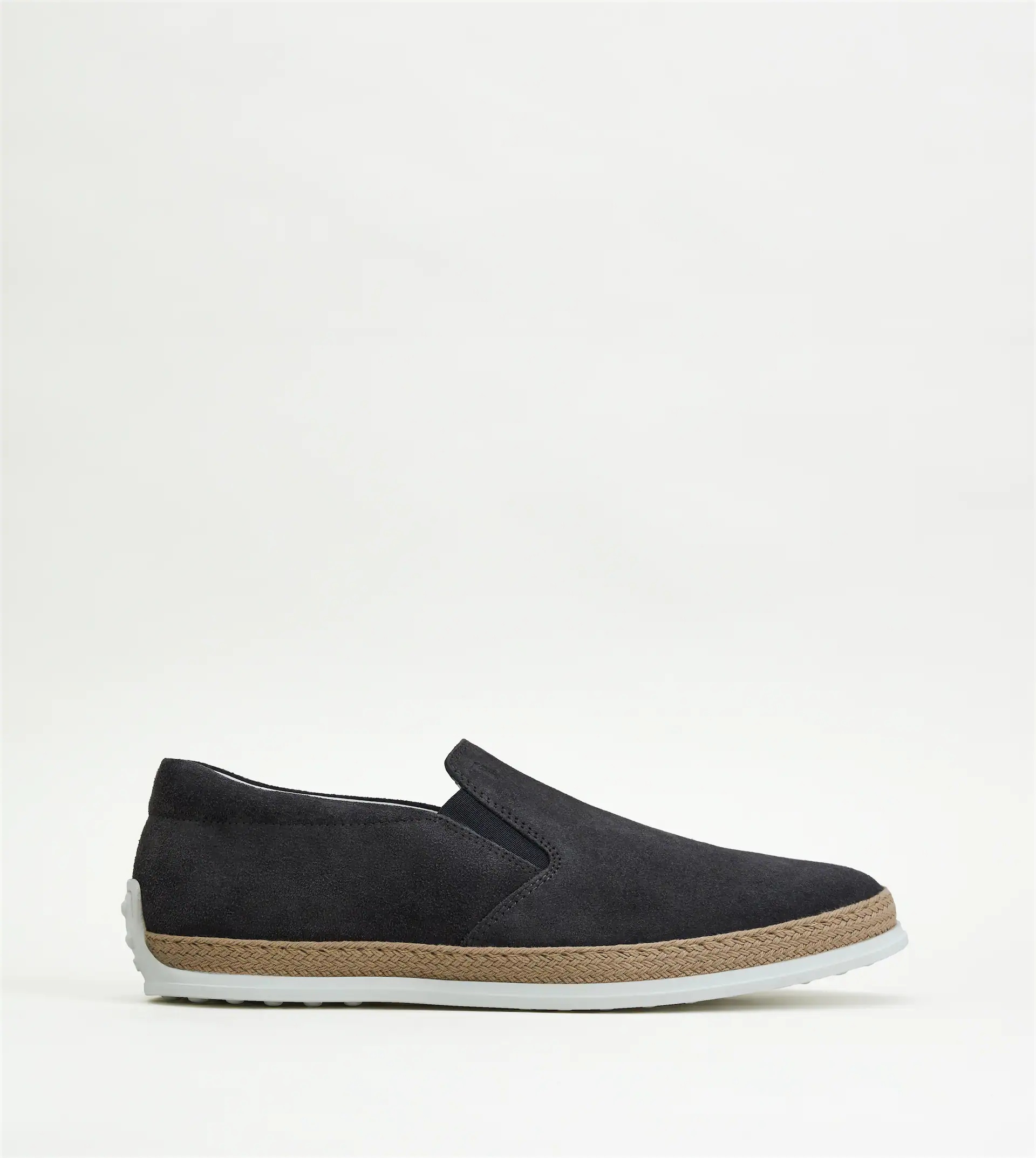 Slip-on shoes in suede with side elastic inserts, handcrafted woven rope trim on the bottom and rubber outsole with embossed pebbles. - Made in Italy - Tod's men's slip-on shoes - Suede upper - Side elastic inserts - Handcrafted woven rope trim on the bottom - Rubber outsole with embossed pebbles - Care and maintenance instructions included - Branded dustbag included