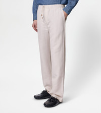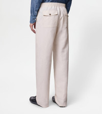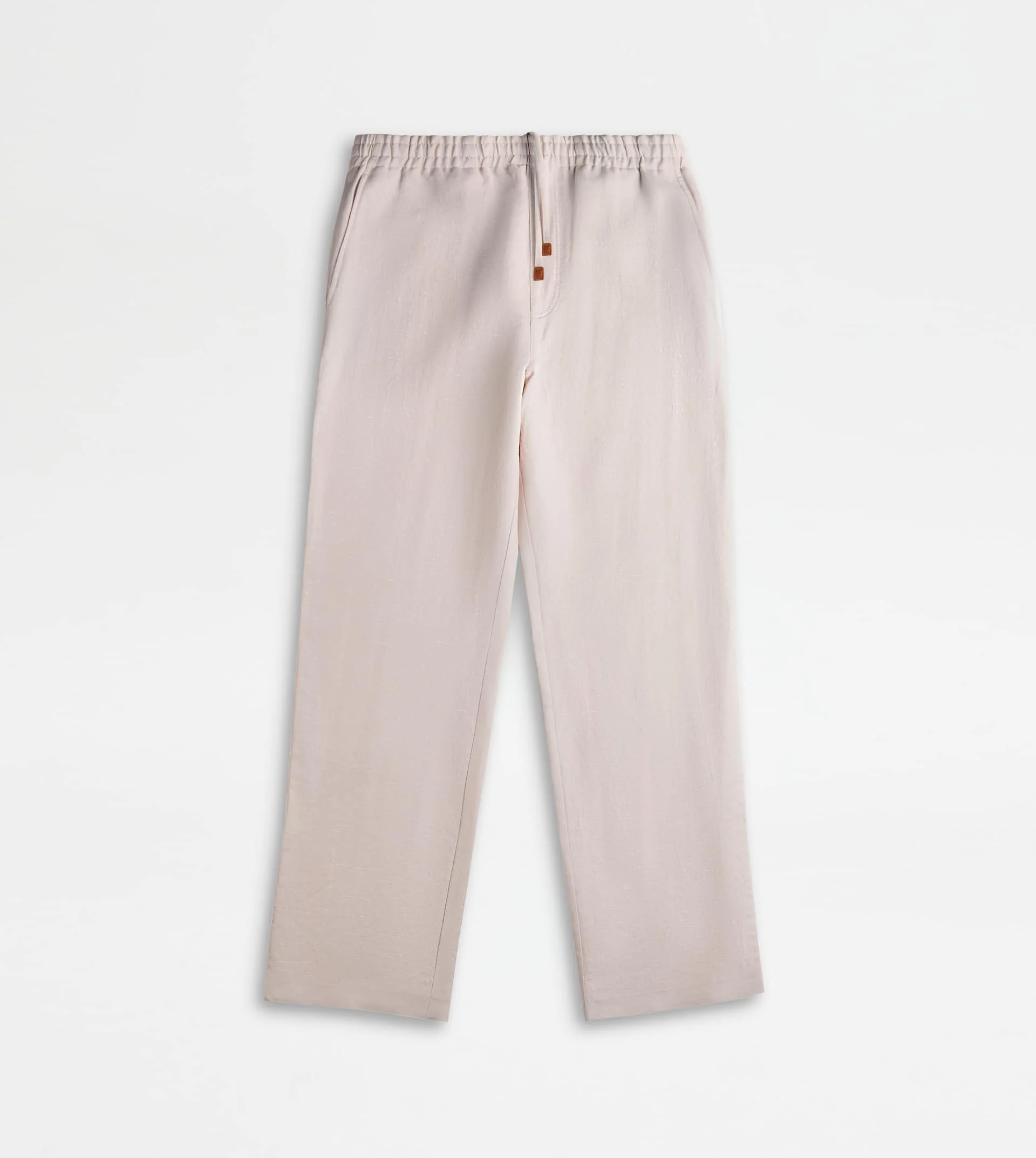 Pants with drawstring, crafted in linen blend cotton. Featuring an elastic waistband, they come with slanted front pockets and the leather Tod's tag on the back pocket. A true spring-summer look passe-partout. - Made in Italy - Pants with drawstring - The model is 6' 2'' and wears size M (IT) - Item composition: 52% cotton, 48% linen, lined parts 100% cotton, leather detailing - Fitting: regular - Maintenance and care cards included