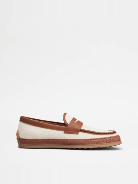 LOAFERS IN CANVAS AND LEATHER - BEIGE, BROWN