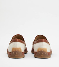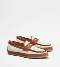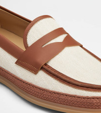 LOAFERS IN CANVAS AND LEATHER - OFF WHITE, BROWN