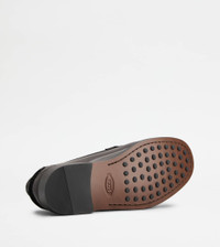 Loafers in brushed calfskin leather with slightly gathered toe and penny bar featuring branded metal insert. Enriched by the Tod's logo stamped on the side and handmade stitching, they come with a leather outsole with rubber injection. - Made in Italy - Men's Tod's Loafers - Calfskin leather upper - Penny bar with branded metal insert - Exposed handmade stitching - Leather heel with rubber insert - Leather outsole with rubber injection - Maintenance and care cards included - Branded dustbag