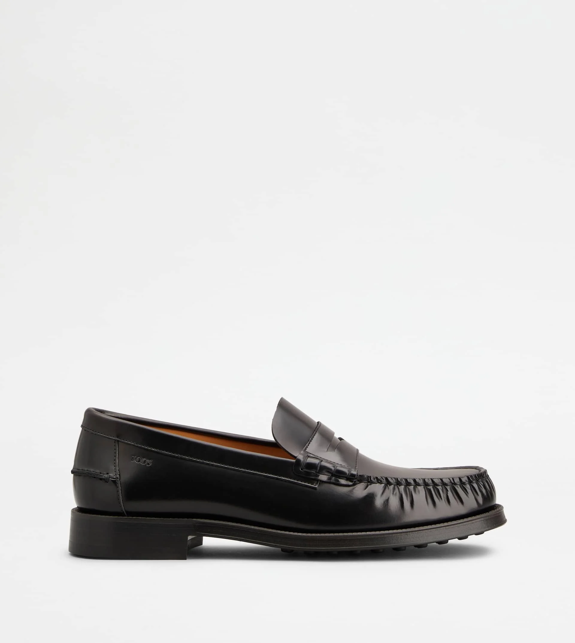 Loafers in brushed calfskin leather with slightly gathered toe and penny bar. Enriched by the Tod's logo stamped on the side and handmade stitching, they come with a leather outsole with rubber injection. - Made in Italy - Men's Tod's Loafers - Calfskin leather upper - Penny bar - Stamped Tod's logo - Exposed handmade stitching - Leather heel with rubber insert - Leather outsole with rubber injection - Maintenance and care cards included - Branded dustbag