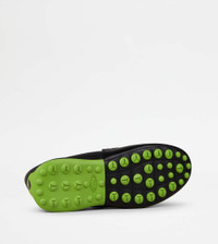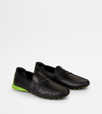 Featuring the iconic Tod's rubber pebbles reinterpreted by drawing on Automobili Lamborghini design, these bold mood loafers come with a back shell emphasized by the car manufacturer logo. The smooth leather upper, with tubular construction and penny bar, is finished by exposed handmade stitching. An original synthesis of traditional craftsmanship and innovation, the result of a collaboration under the sign of the most exclusive Italian lifestyle. - Made in Italy - Unisex Tod's Loafers - Tod's for Automobili Lamborghini - Leather upper - Tubular manufacturing - Penny bar - Exposed handmade stitching - Rubber heel with Automobili Lamborghini logo - Y-shaped rubber pebble outsole