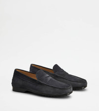 Loafers in calfskin suede, with penny bar. Featuring a slightly gathered toe, they come with a rubber outsole with embossed rubber pebbles. - Made in Italy - Men's Tod's Loafers - Calfskin suede upper - Penny bar - Leather insole - Rubber outsole with embossed rubber pebbles - Maintenance and care cards included - Branded dustbag