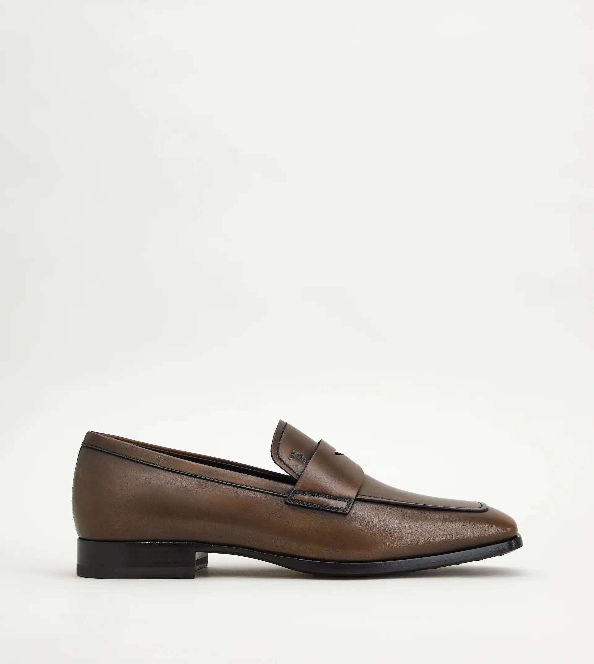 Loafers in elegant brushed leather with a penny bar, stamped Tod's monogram and a leather outsole with rubber injection. - Made in Italy - Men's Tod's Loafers - Leather upper - Penny bar - Stamped Tod's monogram - Leather outsole with rubber injection - Maintenance and care cards included - Branded dustbag