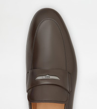 A timeless class characterizes these elegant loafers in calfskin leather, with leather outsole. Featuring a penny bar with branded metal insert, they are a perfect style from the office to the weekend. - Made in Italy - Loafers with penny bar - Calfskin leather upper - Penny bar with metal insert - Leather lining and insole - Rubber heel - Leather outsole - Maintenance and care cards included - Branded dustbag