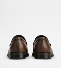 Loafers in antiqued semi-glossy leather with penny bar, stamped Tod's monogram and rubber outsole with embossed pebbles. - Made in Italy - Tod's men's loafers - Leather upper - Stamped Tod's monogram - Exposed hand stitching - Penny bar - Rubber outsole with embossed pebbles - Care and maintenance instructions included - Branded dustbag included