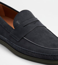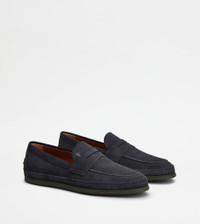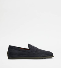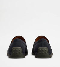 Characterized by a rubber pebble outsole and elegant woven piping, these loafers are crafted in calfskin suede. Featuring a classic penny bar and stamped Tod's monogram, they interpret a refined urban taste. - Men's loafers - Calfskin suede upper - Penny bar - Stamped Tod's monogram - Leather insole - Rubber outsole with rubber pebbles - Maintenance and care cards included - Branded dustbag
