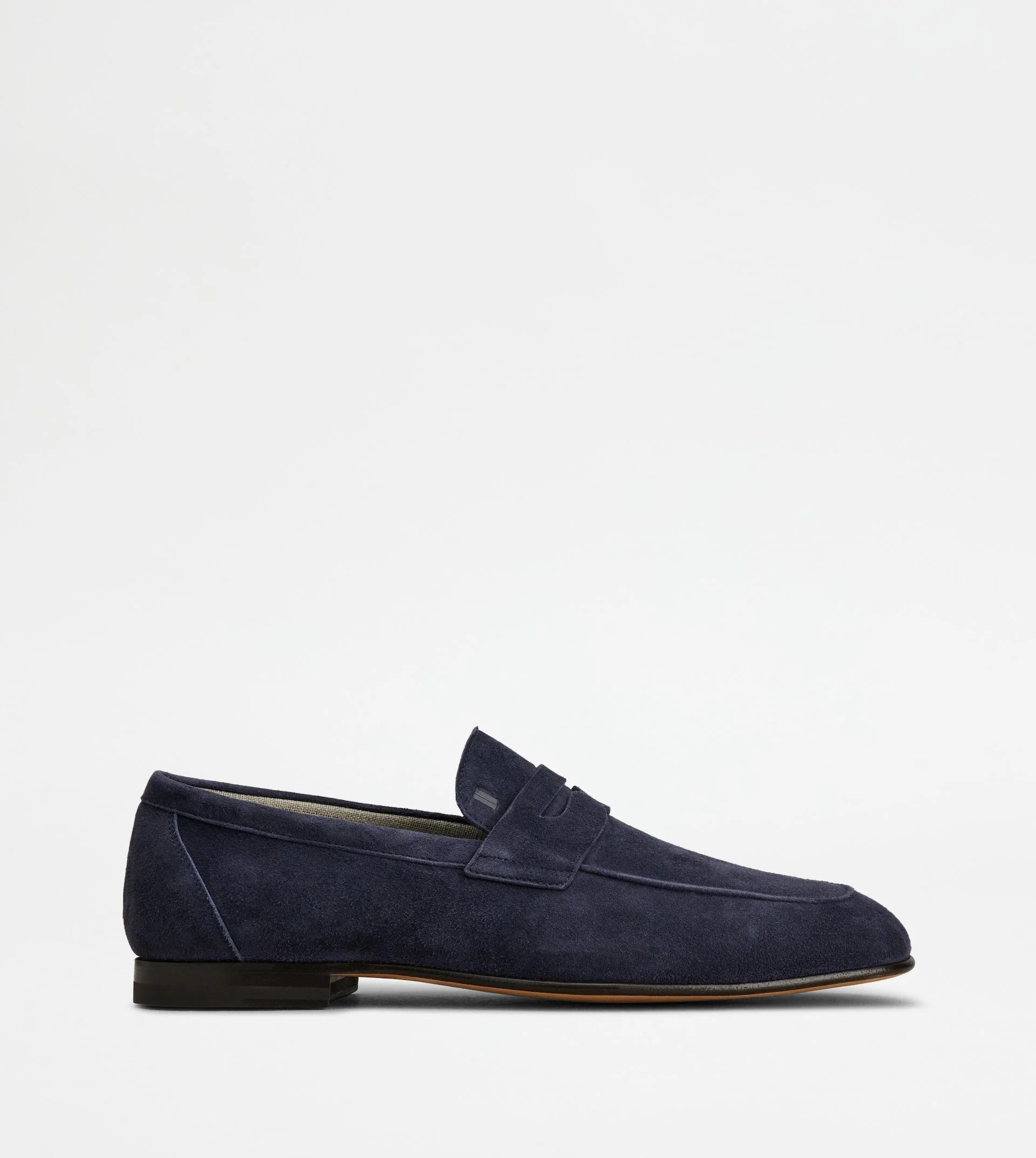 A timeless class characterizes these elegant deconstructed loafers in calfskin suede, with penny bar and leather outsole. Enriched by the Tod's monogram stamped on the front, they perfectly complement both informal outfits and formal combinations. - Made in Italy - Men's Tod's deconstructed loafers - Suede upper - Penny bar - Stamped Tod's monogram - Leather insole - Leather outsole - Maintenance and care cards included - Branded dustbag