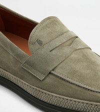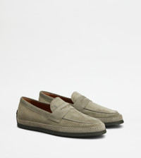 Characterized by a rubber outsole with embossed detailing and an elegant woven piping, these loafers are crafted in calfskin suede. Featuring a classic penny bar and stamped Tod's monogram, they interpret a refined urban taste. - Made in Italy - Men's loafers - Calfskin suede upper - Penny bar - Stamped Tod's monogram - Leather lining and insole - Rubber outsole with embossed detailing - Maintenance and care cards included - Branded dustbag