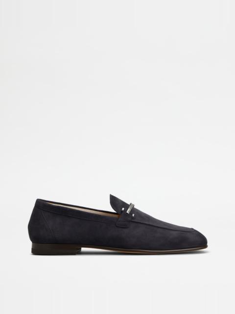 A timeless class characterizes these elegant deconstructed loafers in suede, with leather outsole. Enriched by the branded metal double T accessory, they perfectly complement both informal outfits and formal combinations. - Made in Italy - Men's Tod's deconstructed loafers - Goatskin suede upper - Branded metal double T accessory - Fabric and leather lining - Leather insole - Leather outsole - Maintenance and care cards included - Branded dustbag