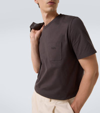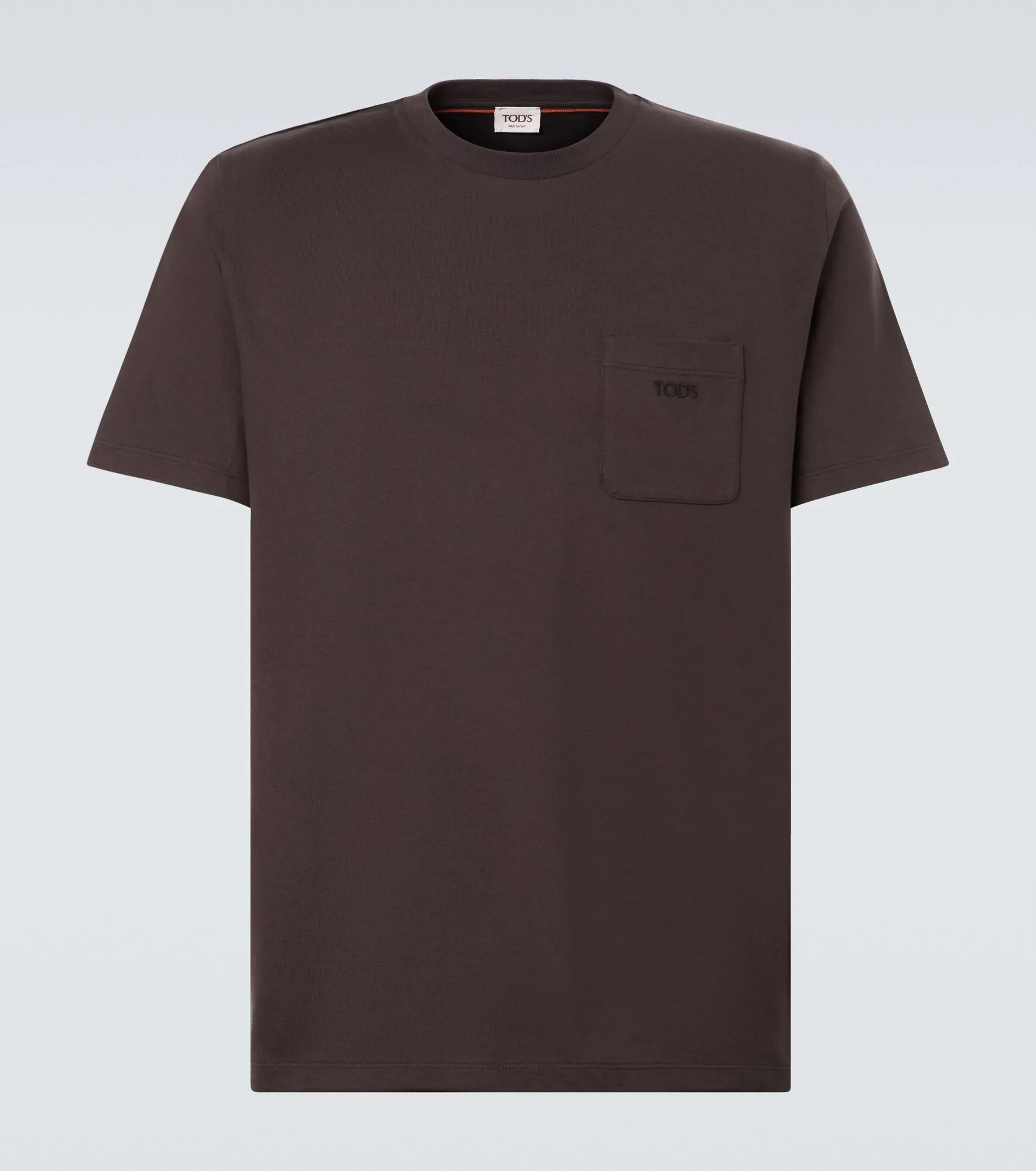Tod's embodies the art of Italian craftsmanship with superior fabrications and timeless silhouettes that lend a sense of quiet sophistication. This classic T-shirt is cut from soft cotton jersey and elevated with tonal branding on the breast pocket. Product Details - Material: 100% cotton - Care instructions: dry clean - Made in Italy - Designer color name: Ombra - Item color: gray - Collar: crewneck - Pockets: utility chest pocket - Item number: P01062210 Size & Fit - True to size - Designed for a loose fit - Slightly stretchy fabric - Falls to the hip - Height of model is 189cm-74.5" and wears a size L