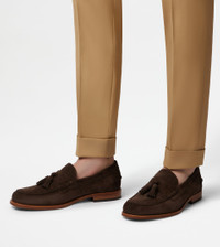Loafers in suede with tassels on the front and leather outsole. Finished with exposed handmade stitching, they are a style with timeless elegance. - Made in Italy - Loafers with tassels - Suede upper - Front tassels - Exposed handmade stitching - Leather heel with rubber insert - Leather outsole - Maintenance and care cards included - Branded dustbag