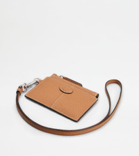 Card holder in sheepskin leather with central ribbing and oval with stamped Tod's logo. Flat pockets, zipped pocket and removable neck strap. - Dimensions: L 5.1 x H 3.5 x D 0.4 ins - Made in Italy - Men's Neck Card Holder - Item crafted in calfskin leather - Tod's logo stamped on the front - Zip closure - 4 cardslots - Maintenance and care cards included