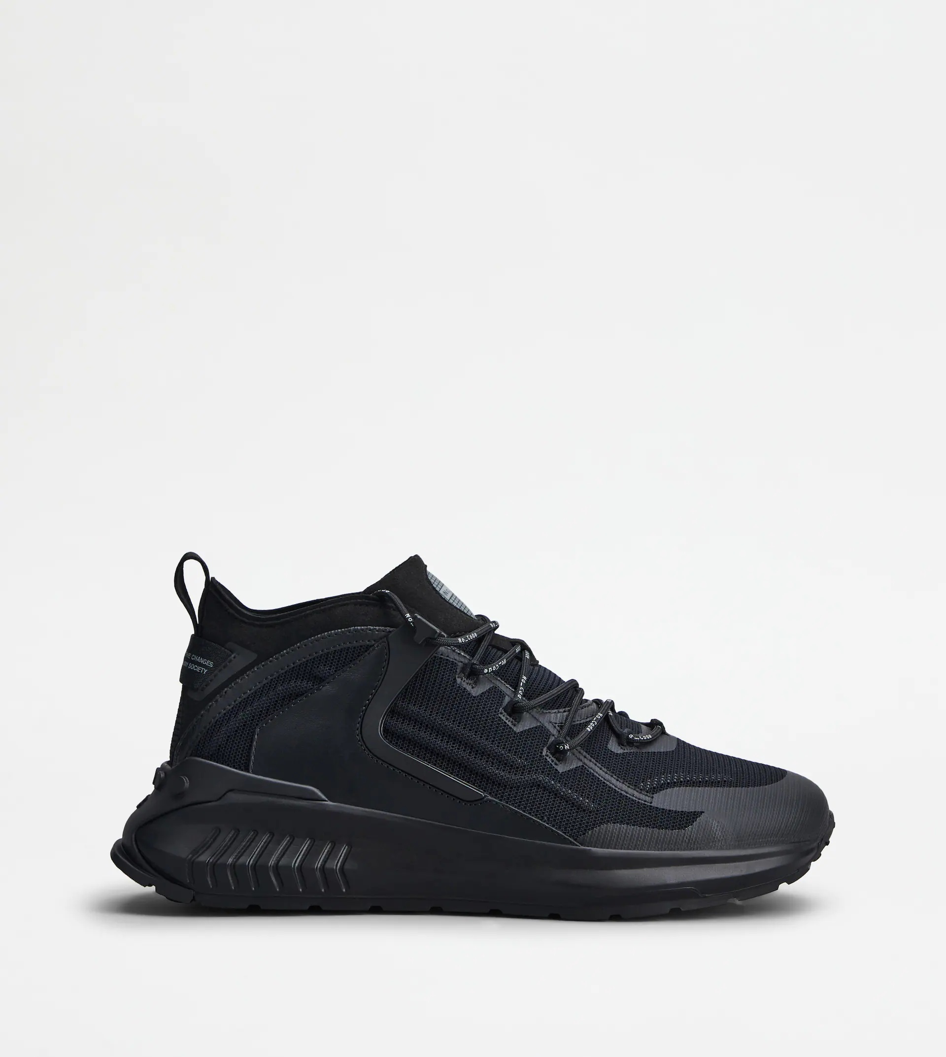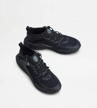 Synthesis of a new contemporary lifestyle, the No_Code J sneakers meet the need for a closer relationship between the urban and the natural environment. The extra-light EVA outsole, with iconic rubber pebbles on the back, offers a height and structure that make it suitable for outdoor use. The upper, achieved through fine workmanship, features a sporty taste with trekking references. Made of layers of overlapping fabric and technical mesh, with embossed detailing and heat-sealing on the toe, they come with leather side inserts and T-shaped eyelets. The back, in soft microfiber, is enhanced by a lettering tape, while the insole is padded to ensure maximum comfort. - Made in Italy - Men's Tod's sneakers - Technical fabric upper - Leather and microfiber inserts - No-Code logo and lettering on the back - Branded laces - T-shaped eyelets - Padded insole - EVA outsole with TPU back insert - Height about 4 cm - Maintenance and care cards included - Branded dustbag