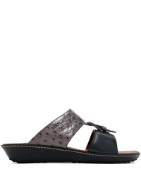 ostrich-effect leather sandals Highlights - Black/brown - Leather - Ostrich effect - Low wedge heel - Leather sole Made in Italy Composition Sole: Calf Leather 100% Lining: Leather 100% Outer: Leather 100%