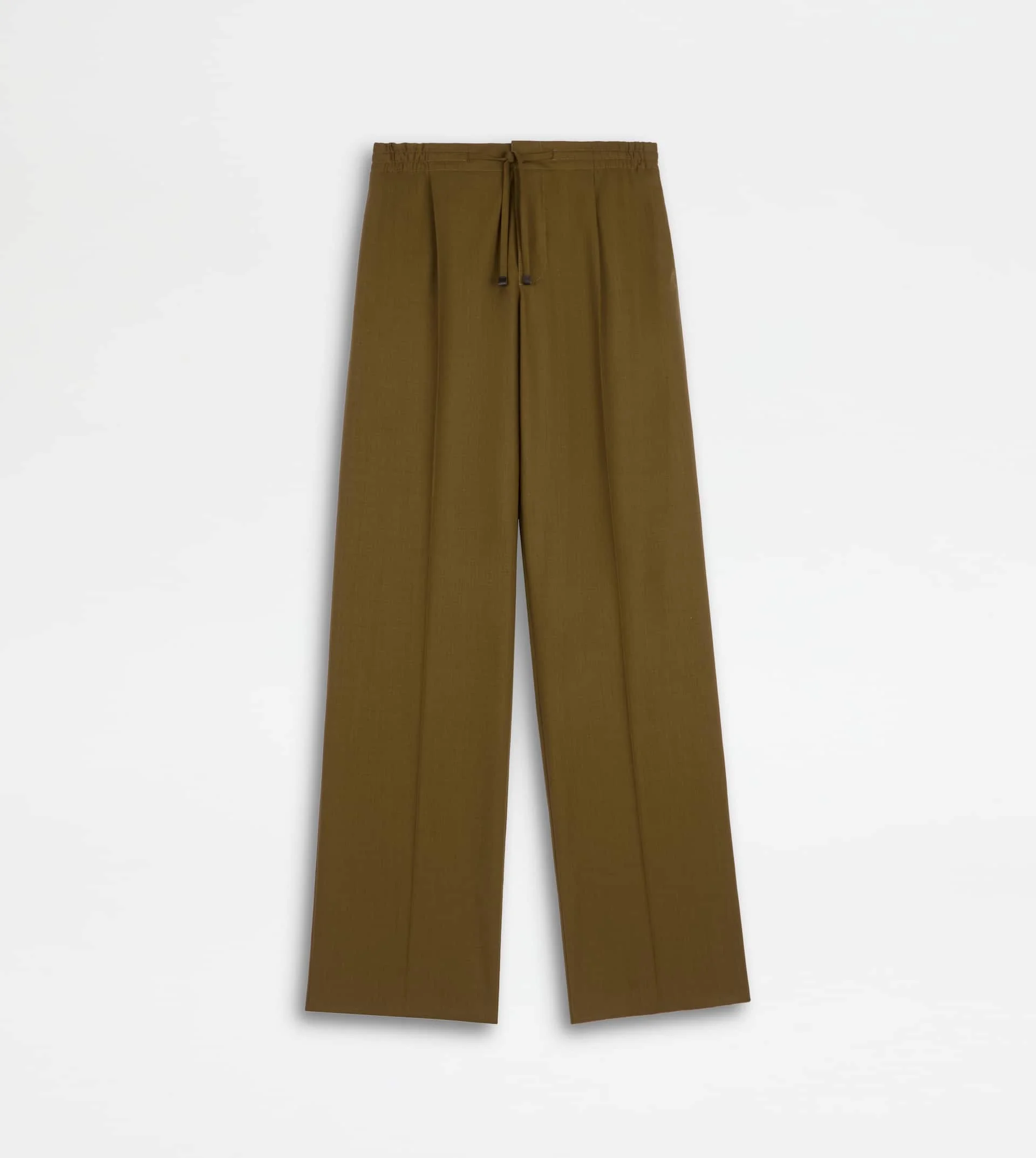 Pants with darts, drawstring and elastic waistband. Crafted in soft super fine wool, they come with side pockets and welt back pockets with button and distinctive T-stitching. The Tod's monogram embroidered on the left side complements the style. - Made in Italy - Pants with drawstring - Fitting: comfort - Item composition: 100% virgin wool, lined parts 100% cotton, leather detailing - Maintenance and care cards included