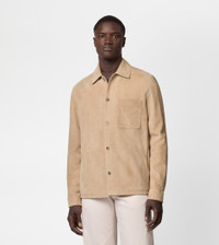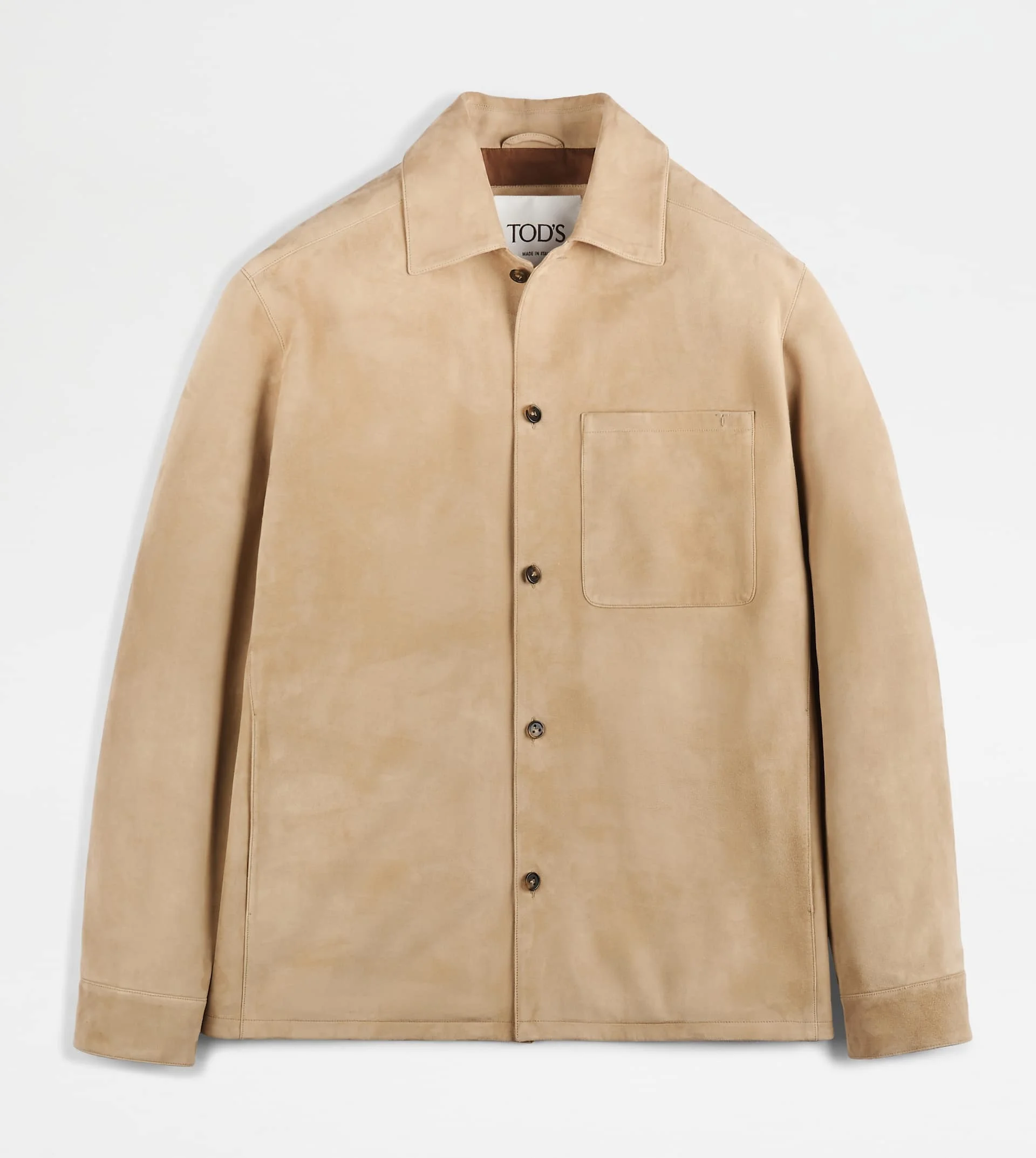 Shirt jacket in suede with anti-drip and anti-stain treatment. A unique material with an exceptional softness, lightweight thanks to its thin thickness yet compact and resistant. Featuring a patch upper pocket, with T monogram that recalls the button stitching, the jacket features two welt lower pockets. - Made in Italy - Suede jacket - Item composition: 100% goatskin leather, body lining 100% cotton, sleeve lining 100% cupro - Fitting: regular - Maintenance and care cards included