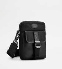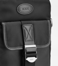 Mini bag phone holder in nylon and nappa leather, with adjustable and removable shoulder strap. Closed with zip, it features a front pocket with flap and branded metal buckle. A functional and refined accessory at once, with the Tod's logo stamped on the front. - Dimensions: L 5.7 ins x H 8.3 ins x D 3 ins - Adjustable and removable shoulder strap: height (drop) 16.1-30.7 ins, length 39-66.9 ins - Made in Italy - Phone holder - Item crafted in nylon - Ovine nappa leather inserts - Tod's logo stamped on the front - Front pocket with flap and metal buckle - Zip closure - Fabric lining - Maintenance and care cards included - Branded dustbag