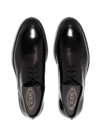 polished leather derby shoes Showcasing a polished finish, these black leather derby shoes from Tod's feature an elegant almond toe and are set upon a low block heel. Made in Italy Composition Outer: Leather 100% Lining: Leather 100% Sole: Leather 100%, Rubber 100% SIZE & FIT Model measurements Height 6 ft 0 in(1.83 m) Bust/Chest 38.97 in(99 cm) Hips 37 in(94 cm) Waist 28.74 in(73 cm) Measurement HEEL 1.06 in(2.7 cm) Sole height 0.59 in(1.5 cm)