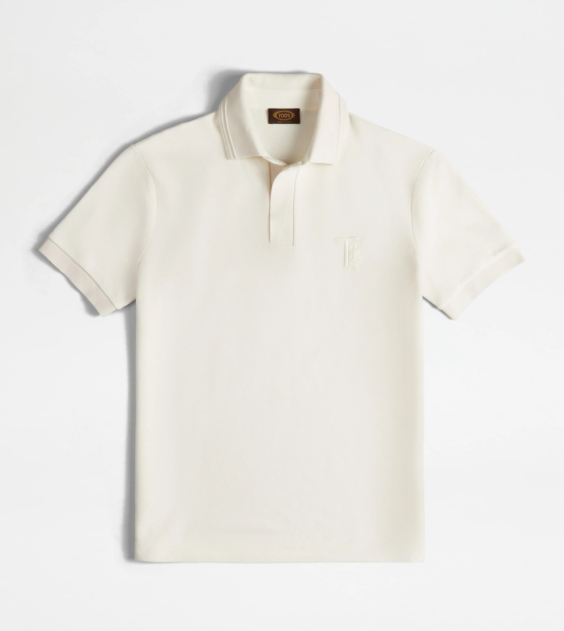 Short-sleeved polo shirt in cotton piquet, with embossed ribbing on the collar. A versatile garment with a sober and timeless style, enriched by the Tod's monogram embroidered on the front. - Made in Italy - Polo shirt in cotton - Item composition: 100% cotton - Maintenance and care cards included