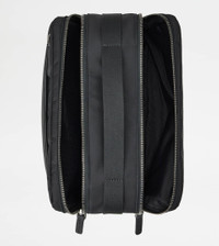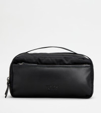 Pouch in fabric and leather with stamped Tod's logo. Featuring two compartments closed with zip, it comes with a wide front pocket with zip and fixed handle. - Dimensions: L 10.2 x H 5.1 x D 4.7 ins - Fixed handle, drop 1.2 ins - Made in Italy - Men's Pouch - Item crafted in fabric - Leather detailing - Tod's logo stamped on the front - Zip closure - 2 compartments - Maintenance and care cards included