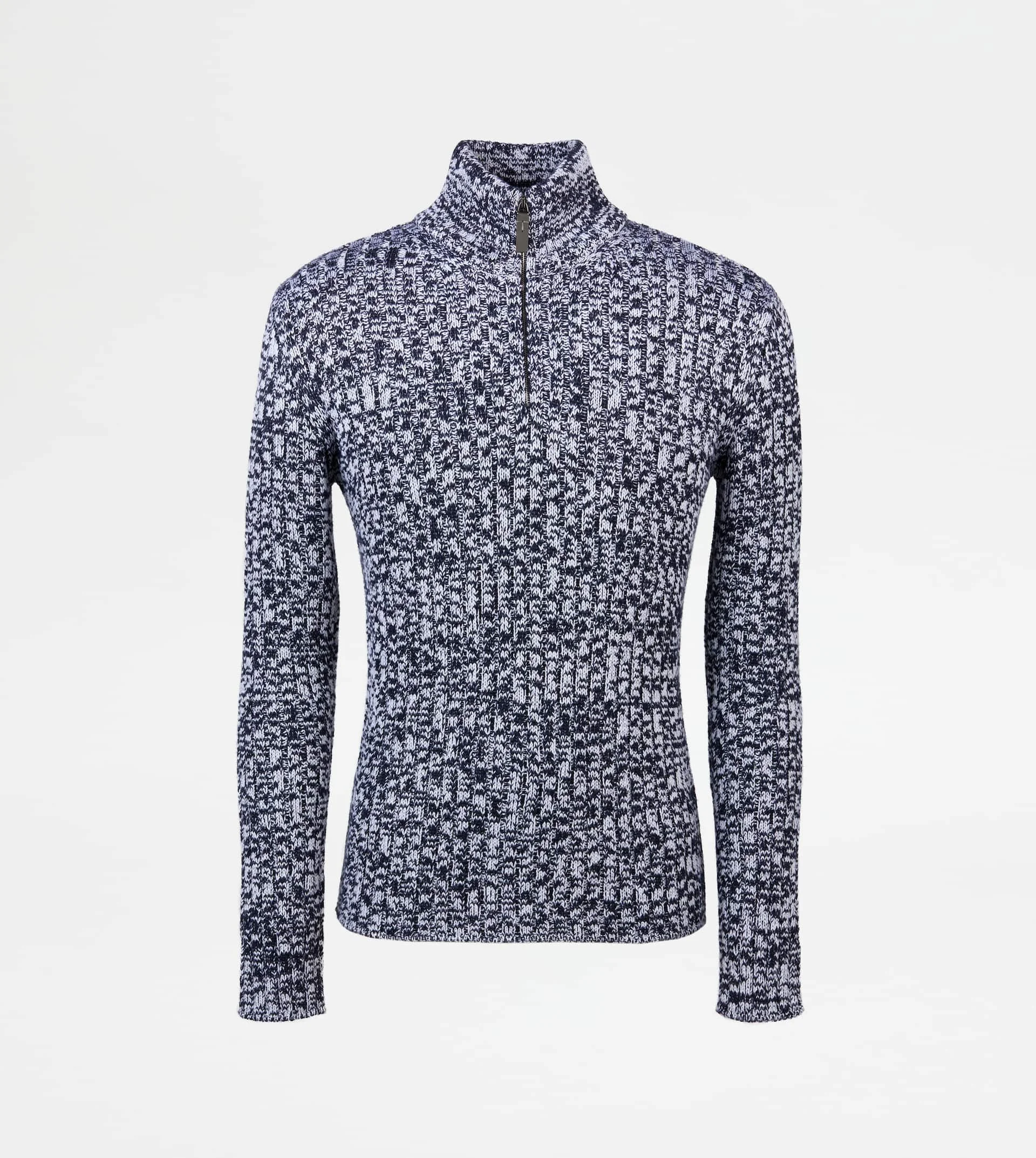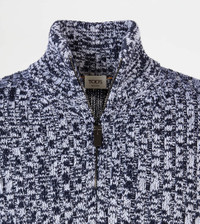 Half-neck pullover in mouline merino wool with ribbed knitting. Featuring the distinctive T-stitching on the zip pull, it comes with the leather Tod's tag applied on the back. - Made in Italy - Pullover in merino wool - Fitting: regular - Item composition: 100% wool, leather detailing - Maintenance and care cards included