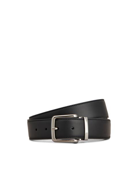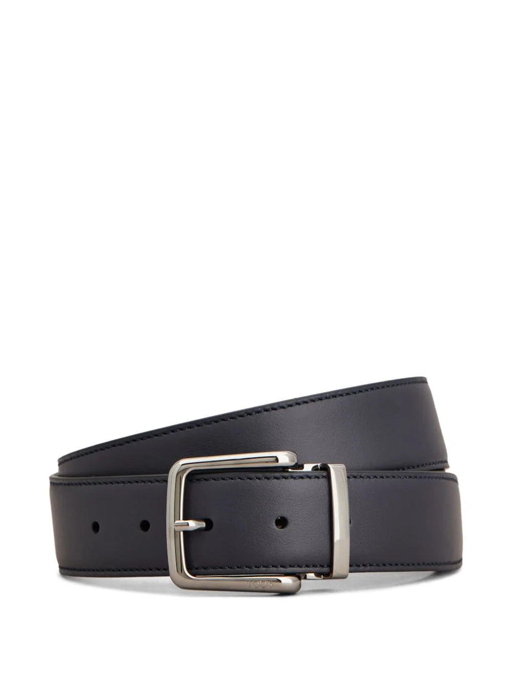 reversible buckled belt Highlights - Navy blue/green - Reversible design - Pin-buckle fastening - Punched holes - Adjustable fit Made in Italy Composition CALFSKIN 100%