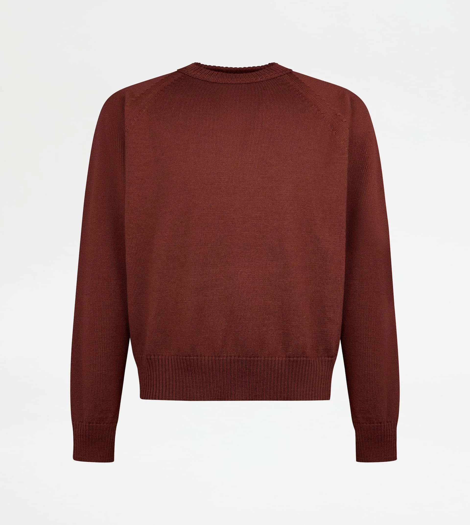 Raglan-cut round-neck pullover in pure merino wool. Featuring ribbed hems, it is enriched by the leather Td's tag applied on the back. - Made in Italy - Pullover in merino wool - Fitting: regular - Item composition: 100% wool, leather detailing - Maintenance and care cards included