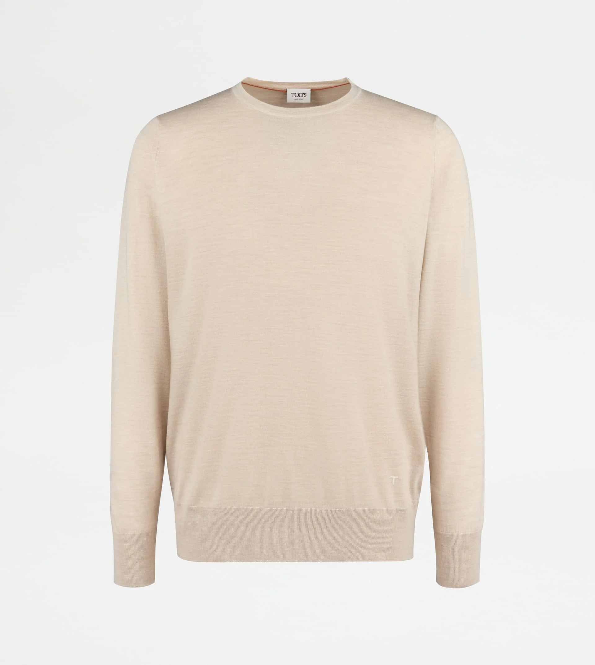 ROUND-NECK PULLOVER IN T15 WOOL - BEIGE