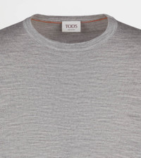 Pullover in combed merino wool, with Woolmark certification. Crafted in 15 micron extra-fine yarn of the highest quality, it comes with a round neck and the Tod's monogram inlaid on the bottom. - Made in Italy - Pullover in wool - The male model is 6' 2'' and wears size M (IT) - Fitting: regular - Item composition: 100% wool - Knit gauge: 18 - Item crafted in Extra Fine Merino wool with Woolmark certification - Maintenance and care cards included