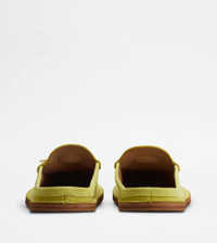 Born from the collaboration with Hender Scheme, these sabots are crafted in velvety suede, with hammered leather tassels and exposed handmade stitching. Featuring a leather outsole with embossed rubber pebbles and a horseshoe-shaped rubber heel, this is a combination of fine design, craftsmanship and a devotion to details. - Made in Italy - Tod's Sabots - Exclusive Collection Hender Scheme - Suede upper - Hammered leather tassels - Exposed handmade stitching - Horseshoe-shaped rubber heel - Leather outsole with embossed rubber pebbles - Maintenance and care cards included - Branded dustbag