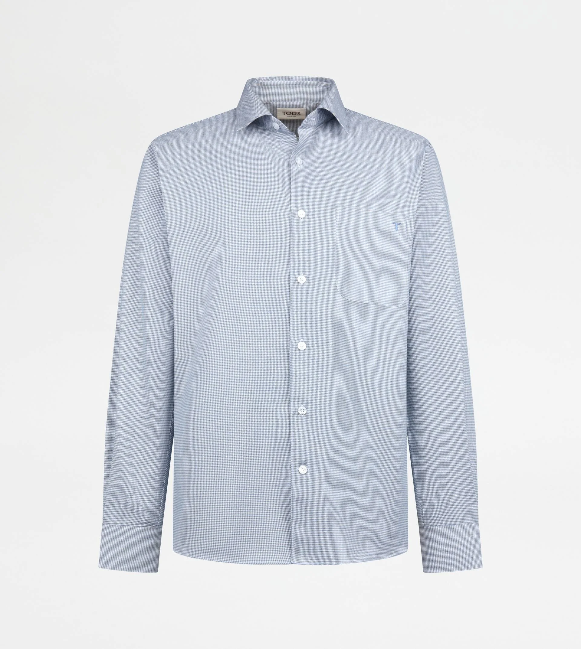 Shirt inn cotton twill with herringbone pattern, Italian collar and branded buttons. Featuring the Tod's monogram inlaid on the breast pocket, it is perfect from the office to the weekend thanks to its informal and refined allure. - Made in Italy - Shirt in cotton - Fitting: regular - Item composition: 100% cotton - Maintenance and care cards included