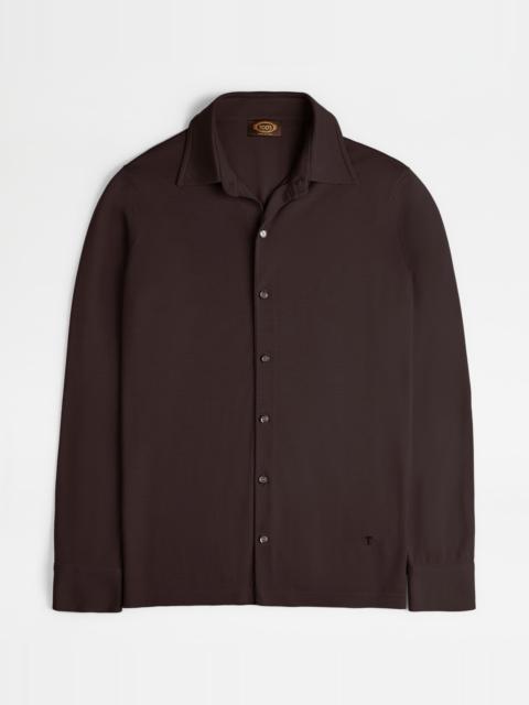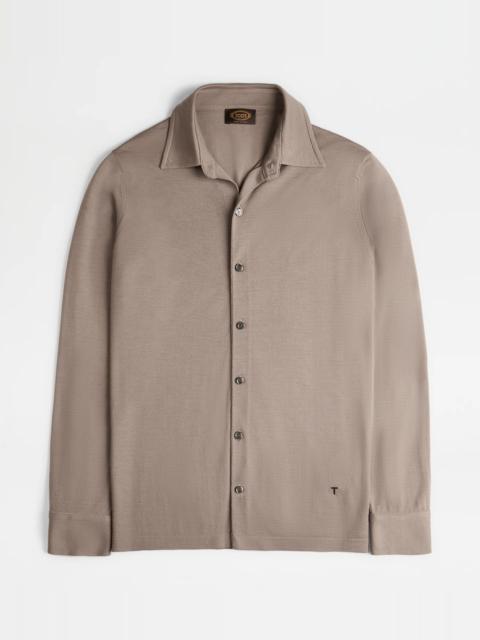Shirt in combed merino wool, with Woolmark certification. Crafted in 15 micron extra-fine yarn of the highest quality, it comes with an Italian collar and branded buttons. A versatile garment with timeless style, enriched by the Tod's monogram detailing inlaid on the bottom. - Made in Italy - Shirt in wool - Fitting: regular - The model is 6' 2'' and wears size M (IT) - Item composition: 100% wool - Knit gauge: 18 - Item crafted in Extra Fine Merino wool with Woolmark certification - Maintenance and care cards included